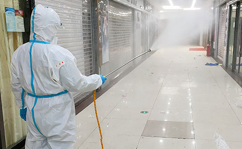 噴霧技術(shù):掛流狀態(tài); 1、橫向噴灑幅度為75 cm; 2、左右幅度間應(yīng)有5 cm的重疊; 3、自上向下噴灑; 4、首先自上向下噴灑,結(jié)束一個噴灌噴 灑幅度 后,順時針橫移,開始下一個幅度噴灑; 5、保持噴嘴距離墻面45 cm; 6、開始噴灑時首先向前傾斜,當噴嘴向下噴灑時,身體向后傾斜; 7、自時口順時針操作,直至房間處理完畢; 8、對人體接觸較多的柜臺、桌椅、門把手、水龍頭等可用0.2%-0.5%過氧乙酸溶液或有效氯為500mg/L-1000mg/L的二氧化氯消毒劑進行噴灑或擦拭消毒,作用時間15-30分鐘。